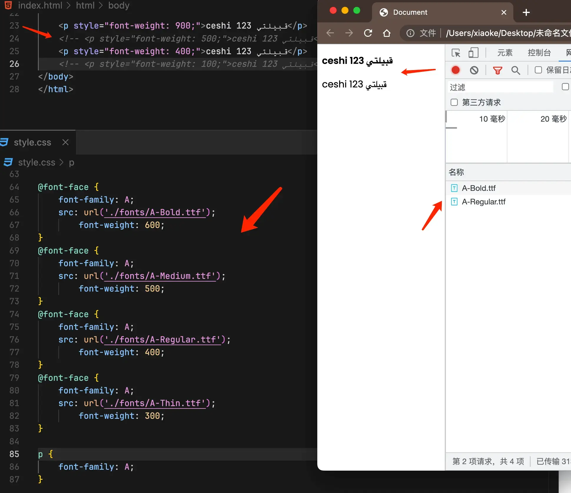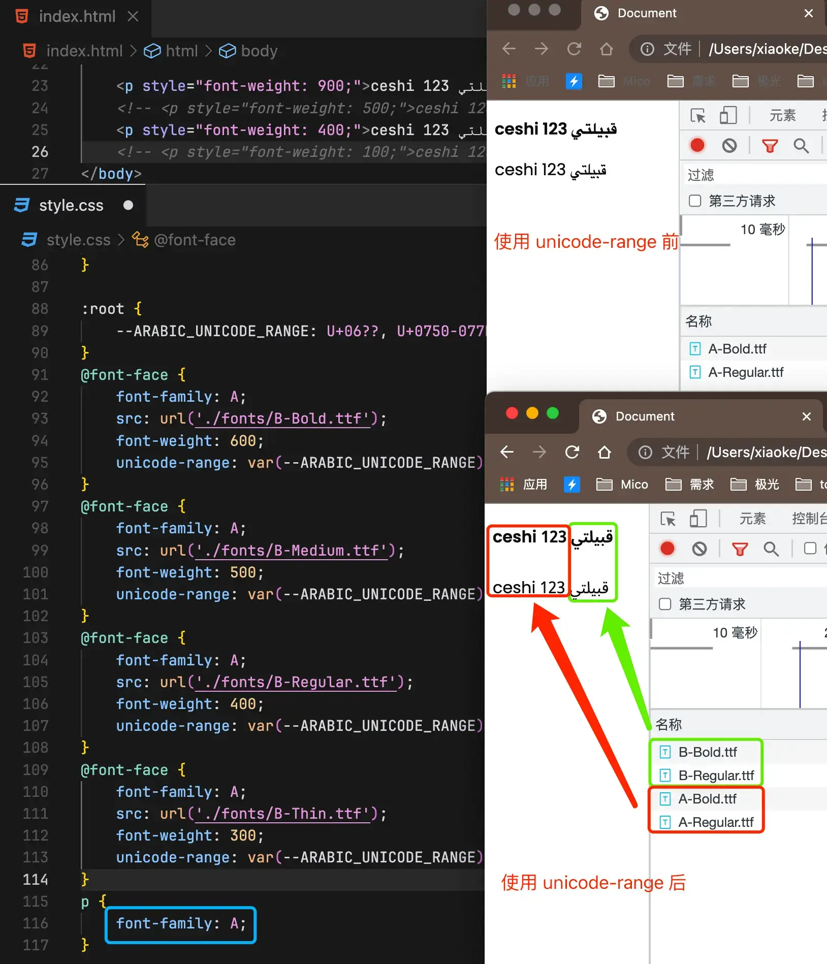 我们通过 font-weight 解决了问题2,并通过 unicode-range 解决了问题1。